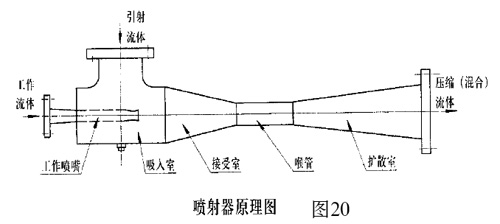 利用流體來(lái)傳遞能量和質(zhì)量,輸送或壓縮流體的這種裝置叫做噴射器。在這種裝置里,不同壓力的兩股流體相互混合并發(fā)生能量交換,以形成一股居中壓力的混合流體,溫合流體有的是氣相,有的是液相,有的是氣相、液相和固相的混合物。進(jìn)入裝置以前,壓力較高的介質(zhì)稱為工作流體,并以很高的速度從噴嘴噴出進(jìn)入噴射器的接受室,并把在噴射器前壓力較低的介質(zhì)吸走,被吸走的流體稱為引射流體。通常在噴射器里最初是發(fā)生工作流體的勢(shì)能或熱能轉(zhuǎn)變?yōu)閯?dòng)能,工作流體的動(dòng)能傳遞給引射流體。